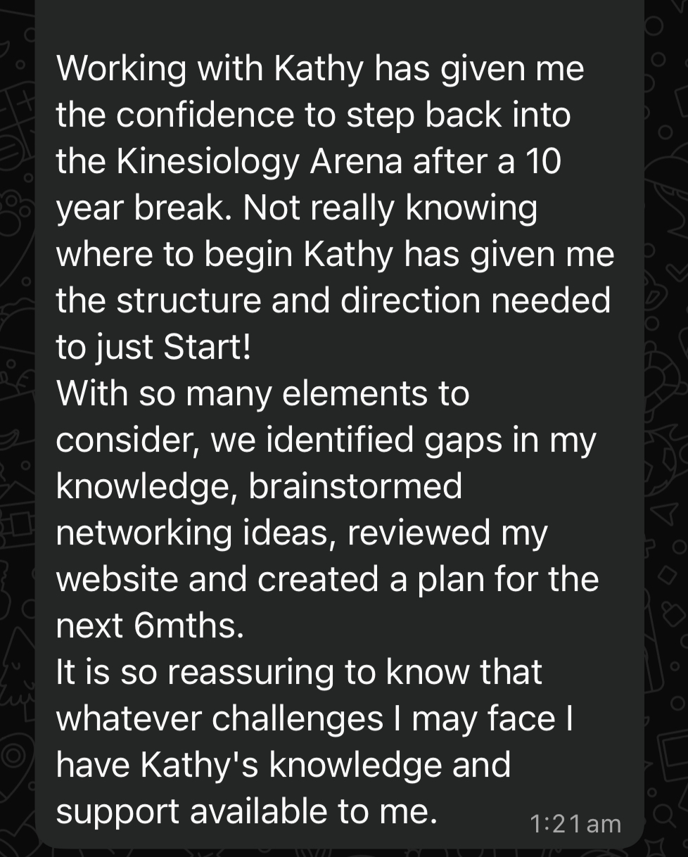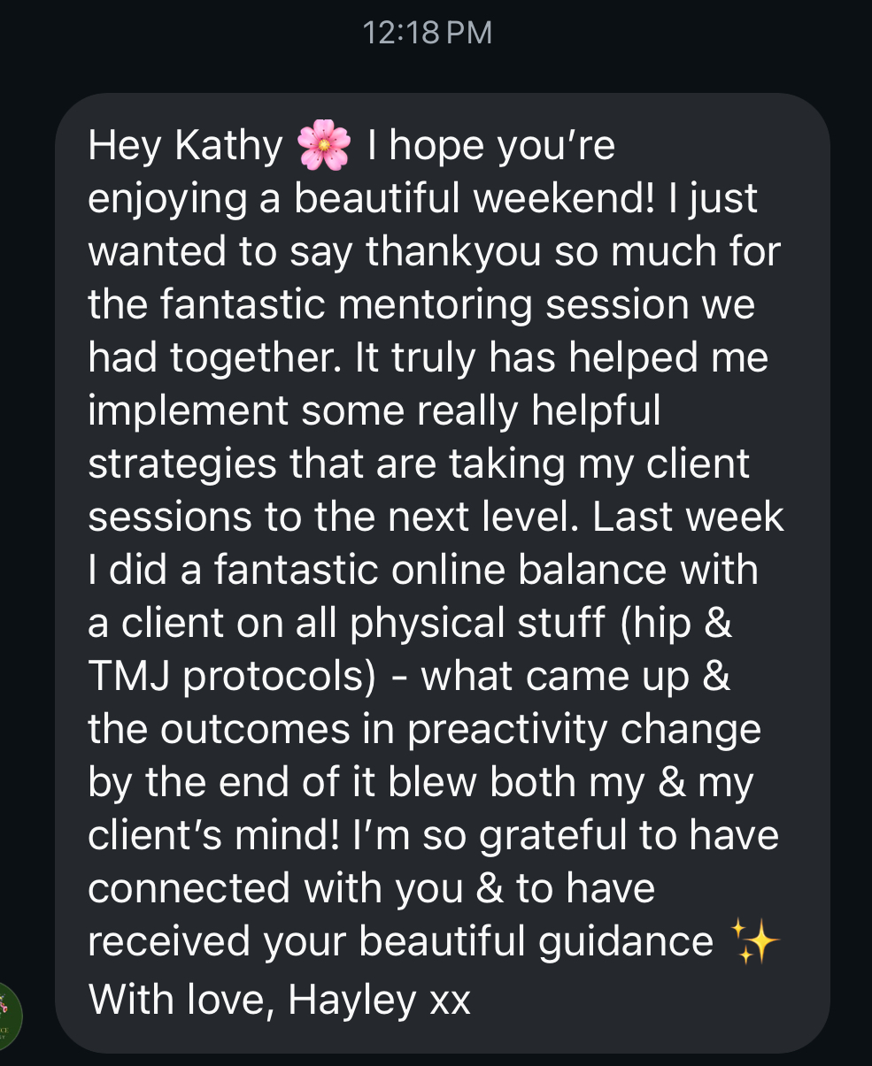 One-on-one mentoring for Kinesiologists ready to refine their craft, clarify their next move, and turn powerful work into a thriving, aligned business.